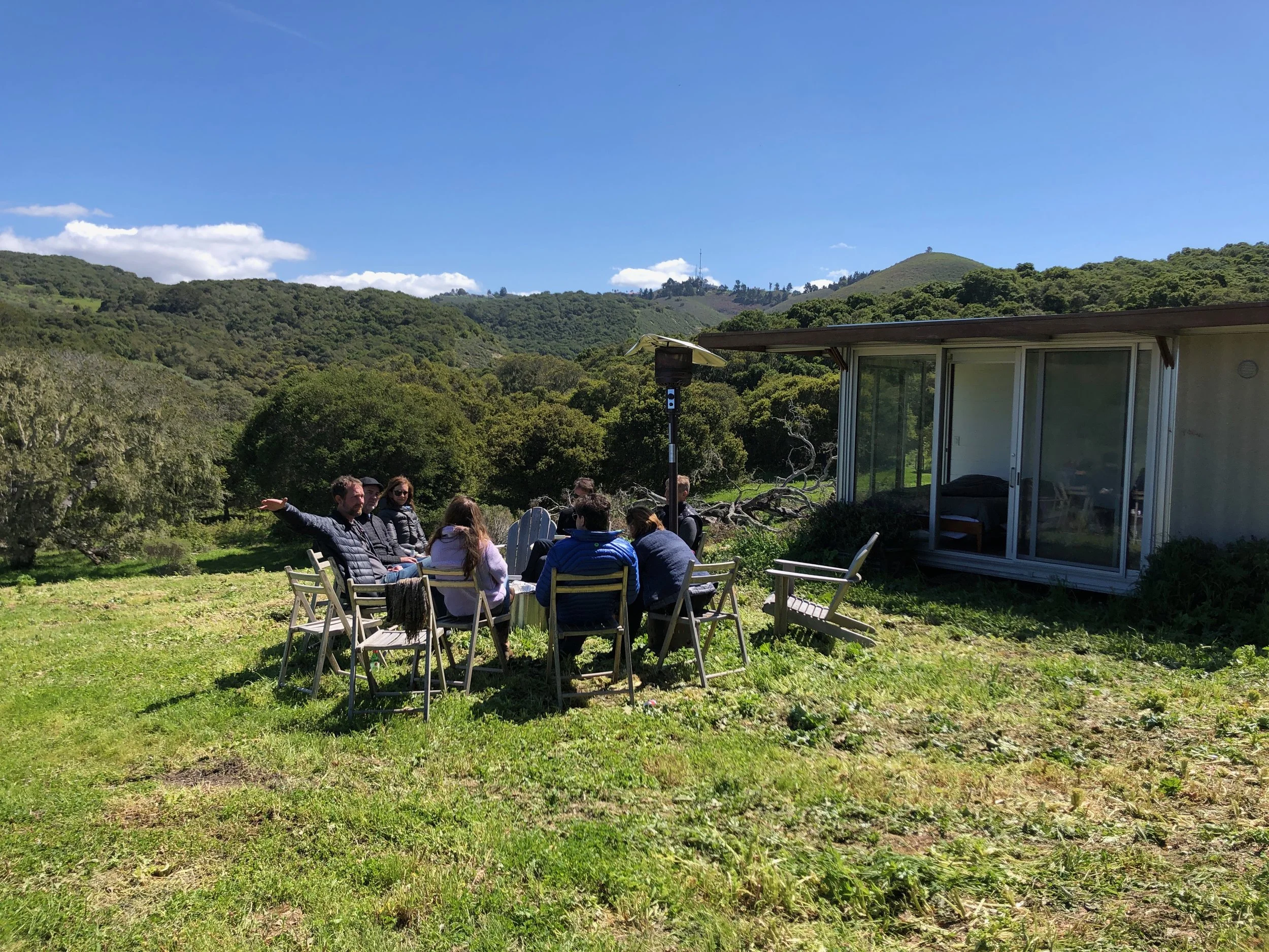 We started the day with a rigorous networking hike around the Walden property. A steady uphill climb among the leafy coastal oaks, let us breathe and introduce ourselves in a relaxed style as a group of individuals from diverse backgrounds and fields joined the discussions.